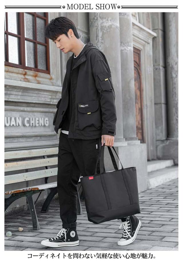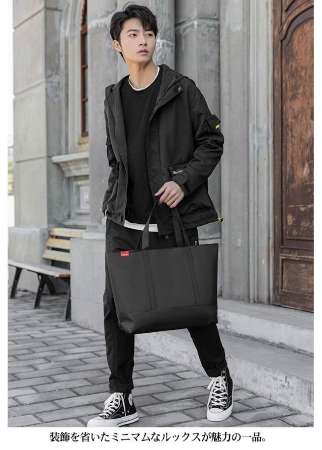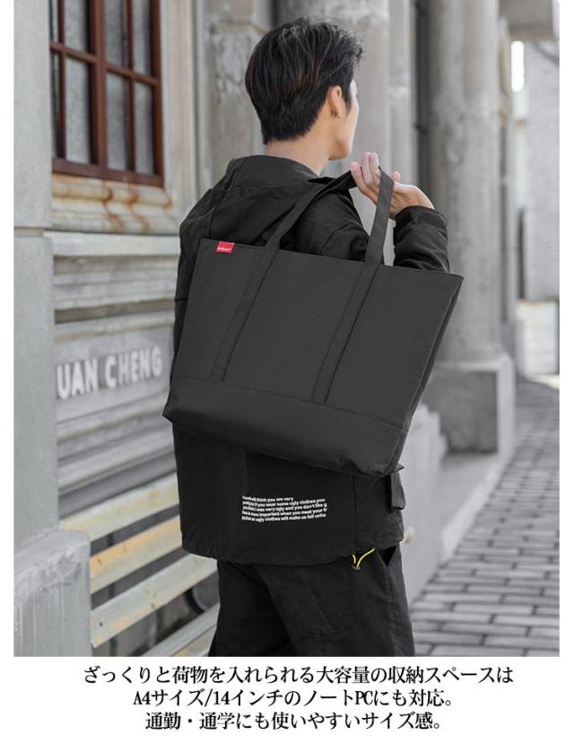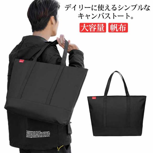トートバッグ 大きめ メンズ 大容量 バッグ A4 PC 対応 通勤バッグ エコバッグ 横型 マチあり ファスナー付き キャンバス 帆布 軽量 撥水 大人 カジュアル 旅行 カバン 鞄 オフィス 仕事鞄 黒 ブラック シンプル 無地