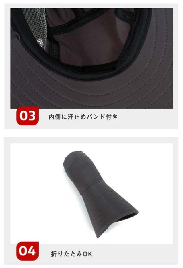 | 首筋までしっかりガードできる多機能日よけ帽子! 大きなつばと日除け垂れが日差し・紫外線をしっかりガード! 吸湿速乾生地&メッシュで通気性抜群、頭部の蒸れを防ぎ心地よい着用感。 アジャスター付きのあご紐。頭部アジャスター付。 軽量設計で、持ち運びにも大変便利です。 男女兼用で使用できるシンプルなデザイン♪ 日除け・紫外線対策に大活躍!! | |