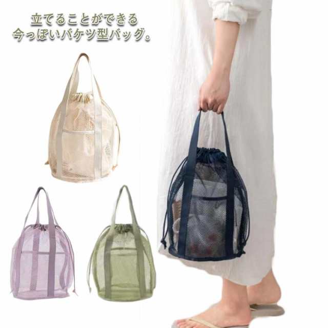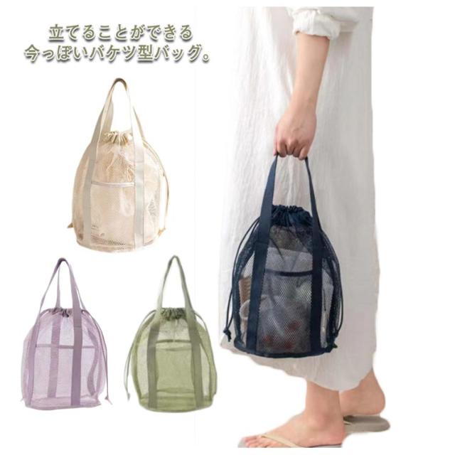 メッシュバッグ 巾着袋 バケットバッグ バケツ バッグ トートバック ビーチ プール 砂場 ミニバッグ バンドバッグ 夏バッグ クリア ネットバッグ レディース 旅行 温泉 海水浴 バッグ シンプル 通勤 お出かけ 送料無料