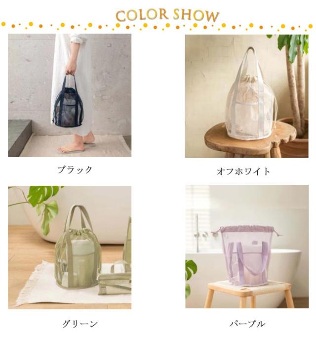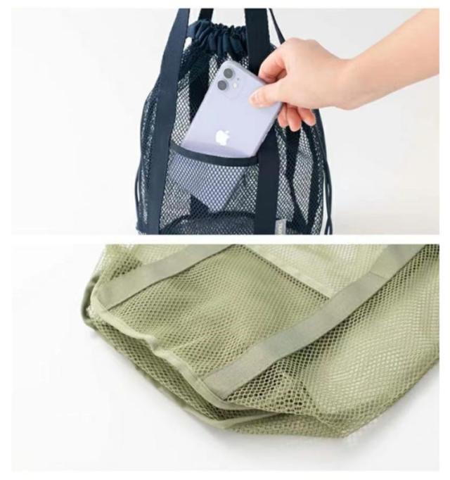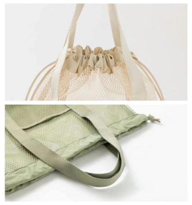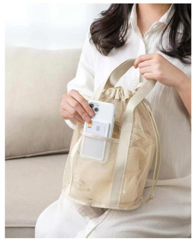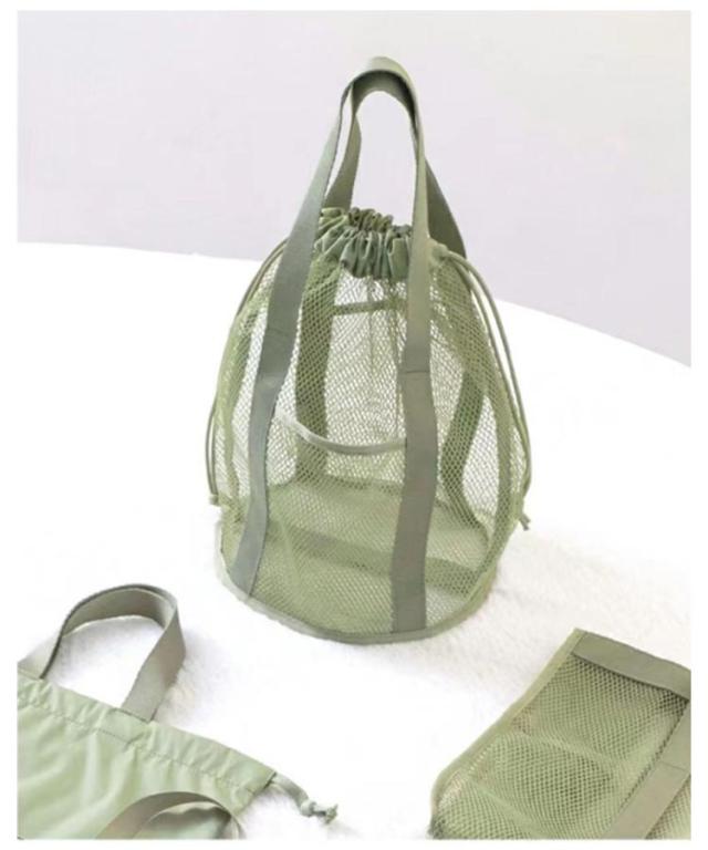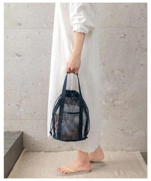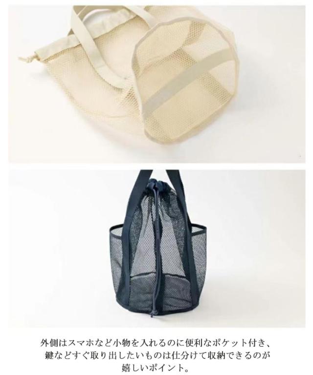 | 立てることができる今っぽいバケツ型バッグ。 夏雰囲気が溢れるメッシュ素材、軽量で汚れにも強く、普段使いからビーチやアウトドアなど、幅広く活躍してくれるメッシュバッグ。 外側はスマホなど小物を入れるのに便利なポケット付き、鍵などすぐ取り出したいものは仕分けて収納できるのが嬉しいポイント。 紐をきゅっと締めると巾着バッグに、そのまま開けてトートバッグのようにアレンジ自由自在。 必要なものはすべて入れることができるから、普段使いや通勤、旅行など様々な場面で活躍してくれるメッシュ巾着袋。 | |