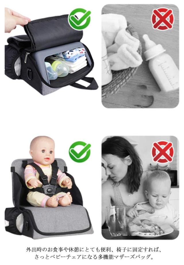 ベビーチェアにもなる マザーズバッグ 2in1 ベビーチェア 大容量 軽量 ショルダーバッグ イスに固定できる チェアになる バッグ 外出 帰省用 外食 赤ちゃん 椅子 出産準備 入院グッズ ベビーシート ママバッグ お出掛け 持ち運び便利