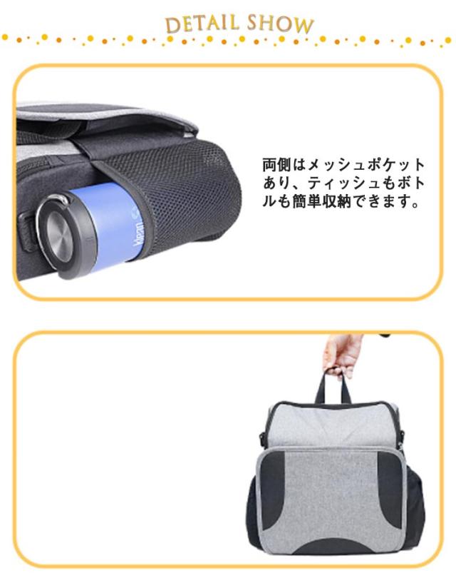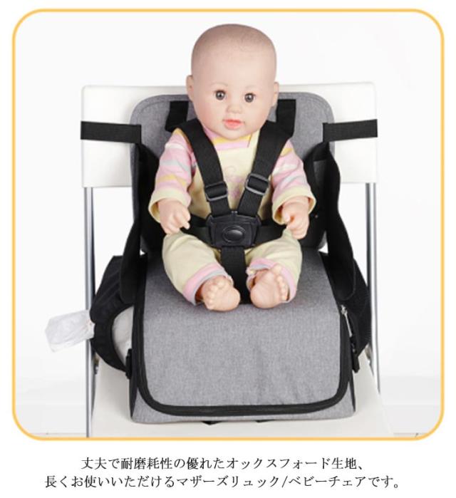 | 1つに2役!ベビーチェアにもなるママバッグ。 外出時のお食事や休憩にとても便利、椅子に固定すれば、さっとベビーチェアになる多機能マザーズバッグ。 見た目以上の大容量。乳瓶や粉ミルク、オムツ、衣類、財布、水筒、傘などがそれぞれスッキリ入れます。両側はメッシュポケットあり、ティッシュもボトルも簡単収納できます。 丈夫で耐磨耗性の優れたオックスフォード生地、長くお使いいただけるマザーズリュック/ベビーチェアです。 100kgの耐荷重で赤ちゃんが座ってもママが安心。 | |