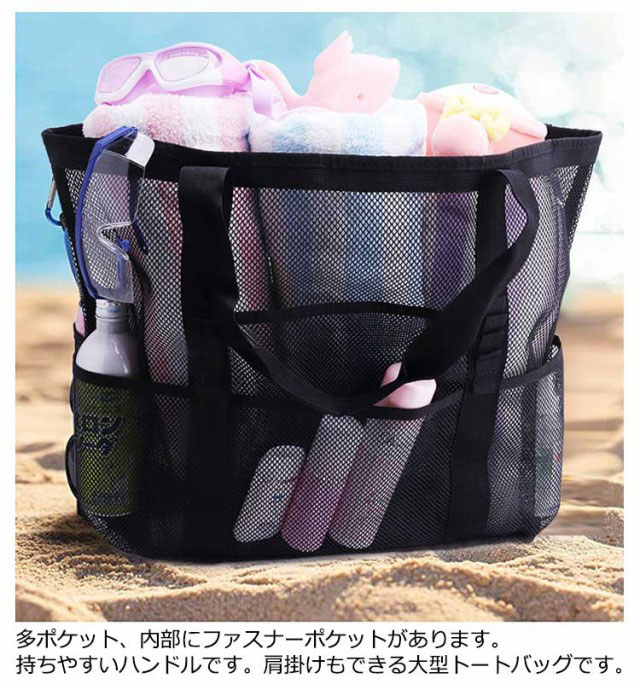 メッシュバッグ ビーチバッグ ビーチトートバッグ プールバッグ メッシュ トートバッグ 軽量 大容量 スパバッグ 温泉バッグ 肩掛け 手提げ お風呂バッグ ジム 温泉 銭湯 プール 砂場 水泳 海水浴 水遊び バッグ 大きめ 送料無料 スイムバッグ