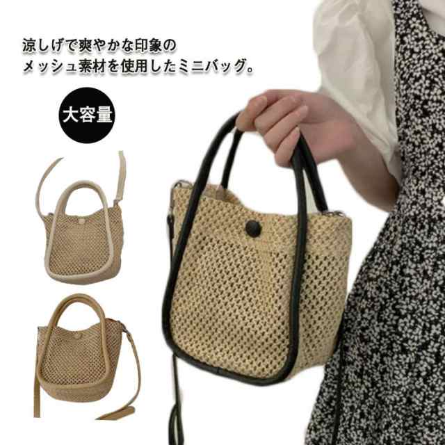 送料無料 かごバッグ トートバッグ 小さめ レディース 2way 肩掛け 斜めがけ マチ広 大容量 ミニトートバッグ ペーパーバッグ PUレザー メッシュ 軽量 軽い スクエア ショルダーバッグ ハンドバッグ サコッシュ ミニバッグ
