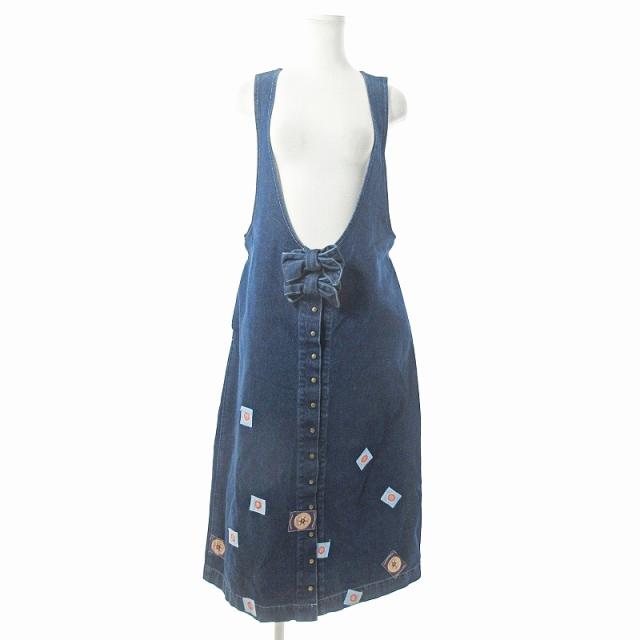 【中古】ピンクハウス PINK HOUSE 80's〜90's ヴィンテージ デニム ワンピース ジャンパースカート JSK ロゴパッチ