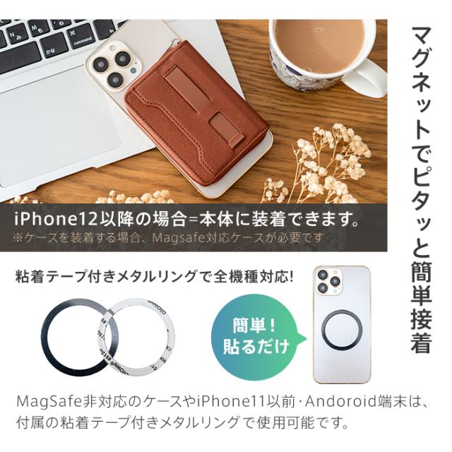 MagSafe対応 カードケース 財布 小銭 スマホ ウォレット ファスナー 貼り付け マグネット スタンド リング MagSafe 小銭入れ カードポケット カード収納 コインケース ポケット 磁気 磁力 全機種対応 キャッシュレス 薄型 コンパクト 定期入れ パスケース おしゃれ シンプル