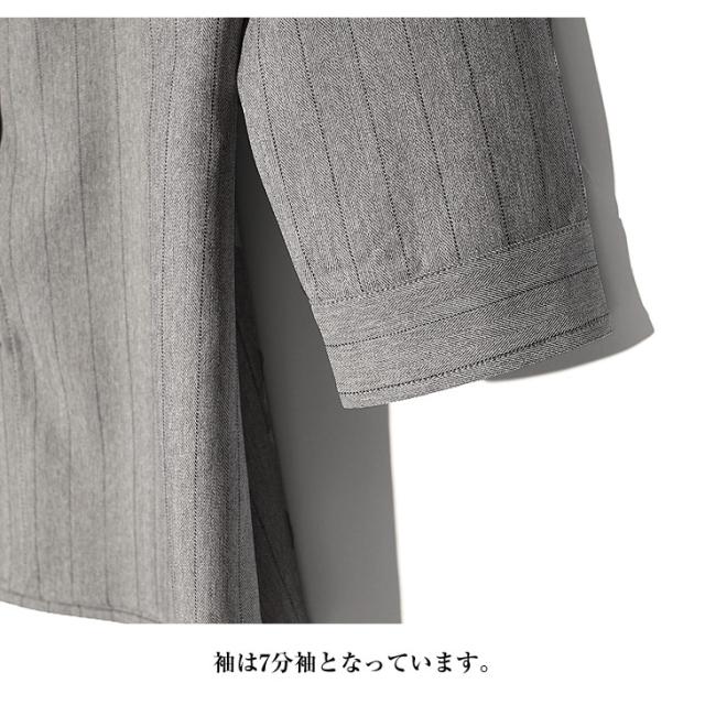 バンドカラーの7分袖シャツ。