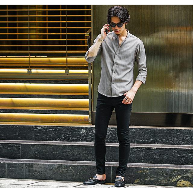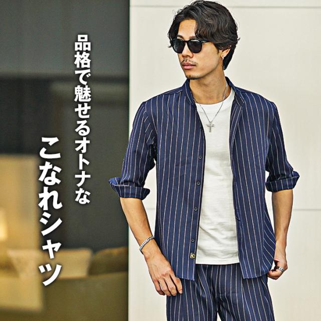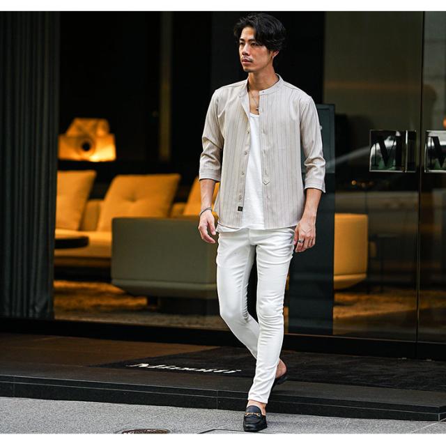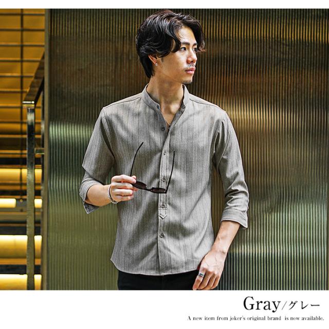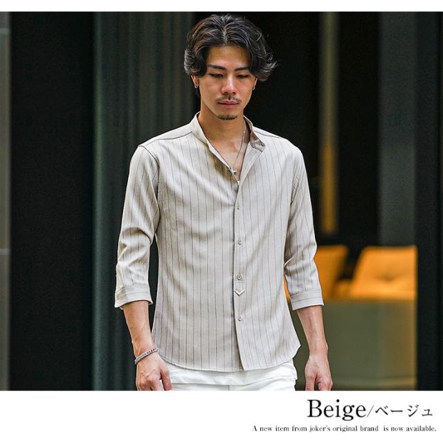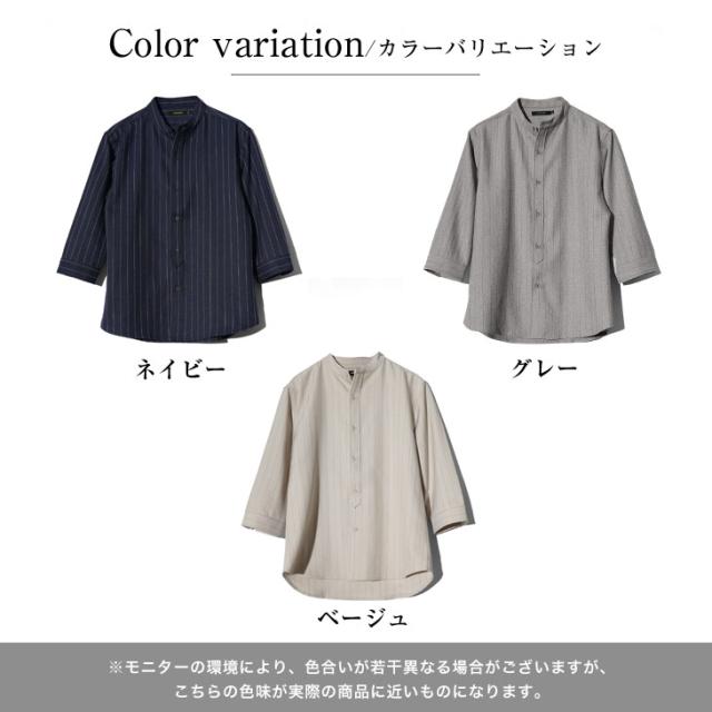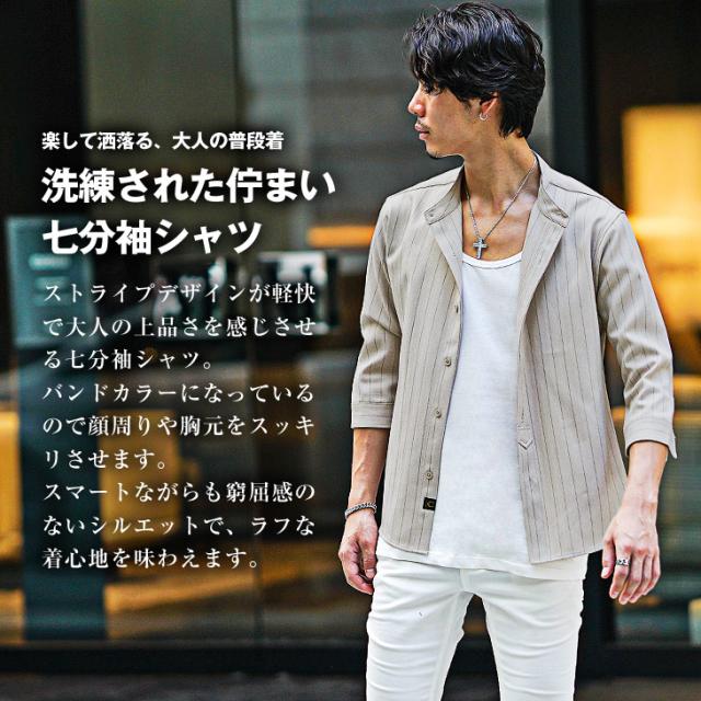 バンドカラーシャツ メンズ 7分袖 シャツ カジュアルシャツ 7分袖シャツ メンズ シワ防止 シャツ カジュアル シャツ ネイビー ベージュ グレー 大きいサイズ XL タイト スリム 春 春物 夏 夏物 メンズファッション ちょいワル ちょい悪 お兄系 オラオラ系 SOMEDIFF 新作
