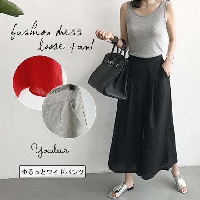 ワイドパンツ レディース 夏 ガウチョパンツ 九分丈 無地 体型カバー フレア おしゃれ 着痩せ ゆったり カジュアル ナチュラル 20代 30代 40代 kz3426