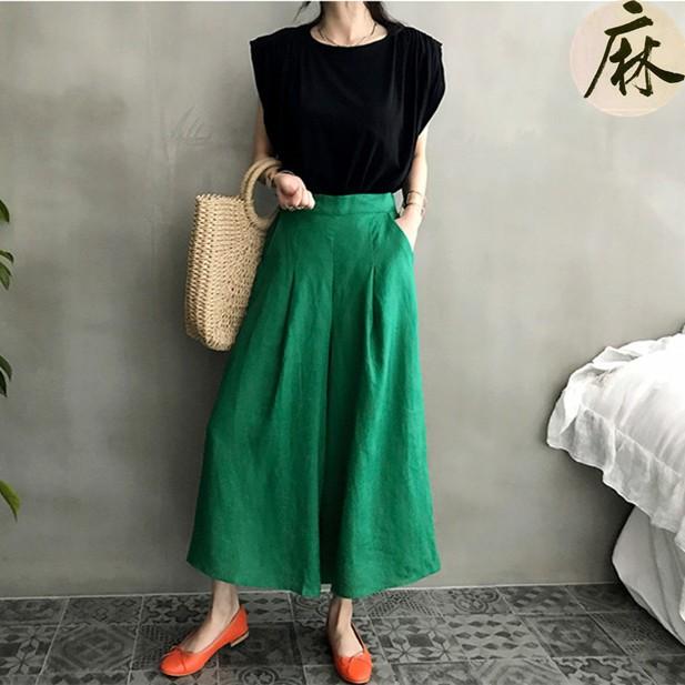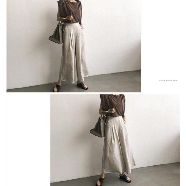 リネンパンツ レディース 九分丈 ワイドパンツ コットンリネン 綿麻混パンツ ガウチョパンツ ロング 夏 ゆったり 着痩せ ガウチョ パンツ 美脚パンツ 大人 カジュアル 20代 30代 40代 50代 ファション