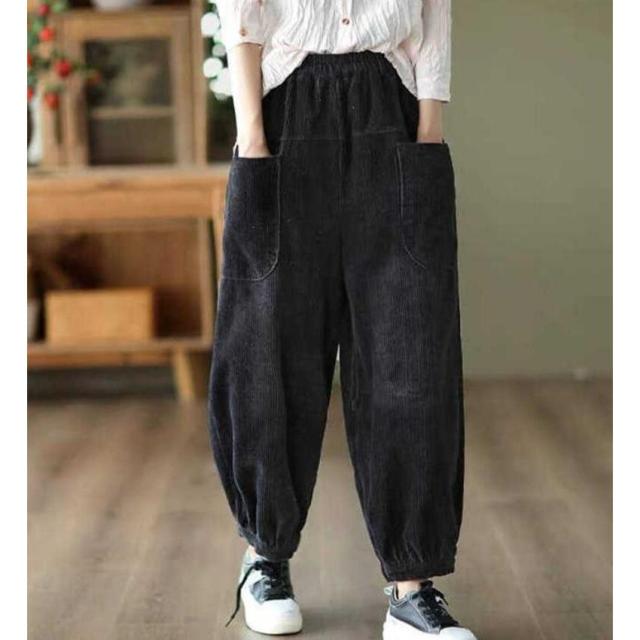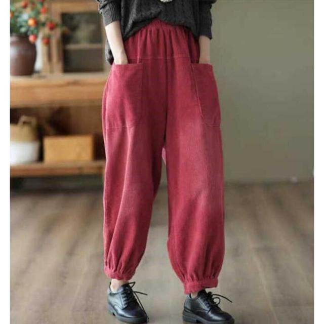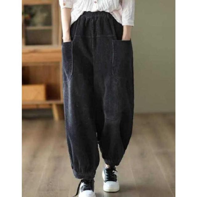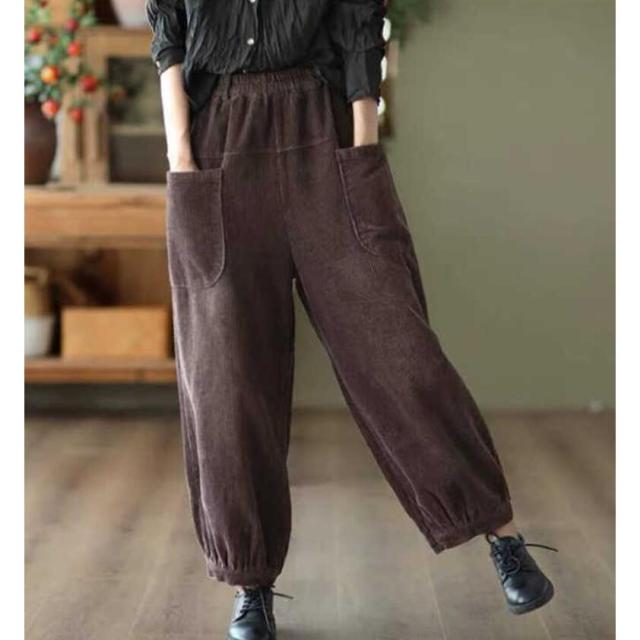 キーワード パンツ テーパードパンツ ボトムス ワイドパンツ レディース コーデュロイ ウエストゴム テーパード ロング 無地 ワイド ゆったり 秋 冬 シンプル 着回し カジュアル ポケット付き ハイウエスト 体型カバー レトロ 通勤 OL オフィス 20代 30代 40代 50代 大人 送料無料