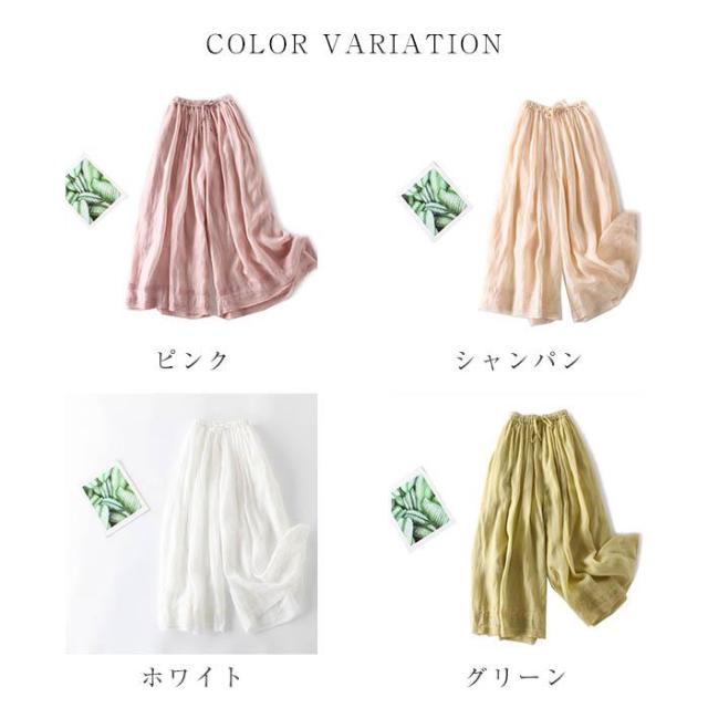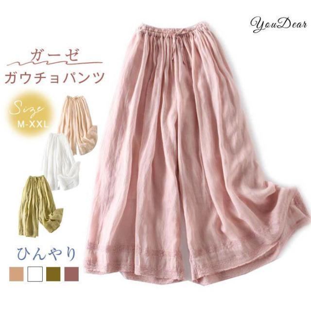 ワイドパンツ パンツ レディース 40代 春夏 ガーゼ ボトムス ロングパンツ パンツ ガーゼパンツ 韓国 おしゃれ 20代 30代 50代 ウエストゴム 涼しい