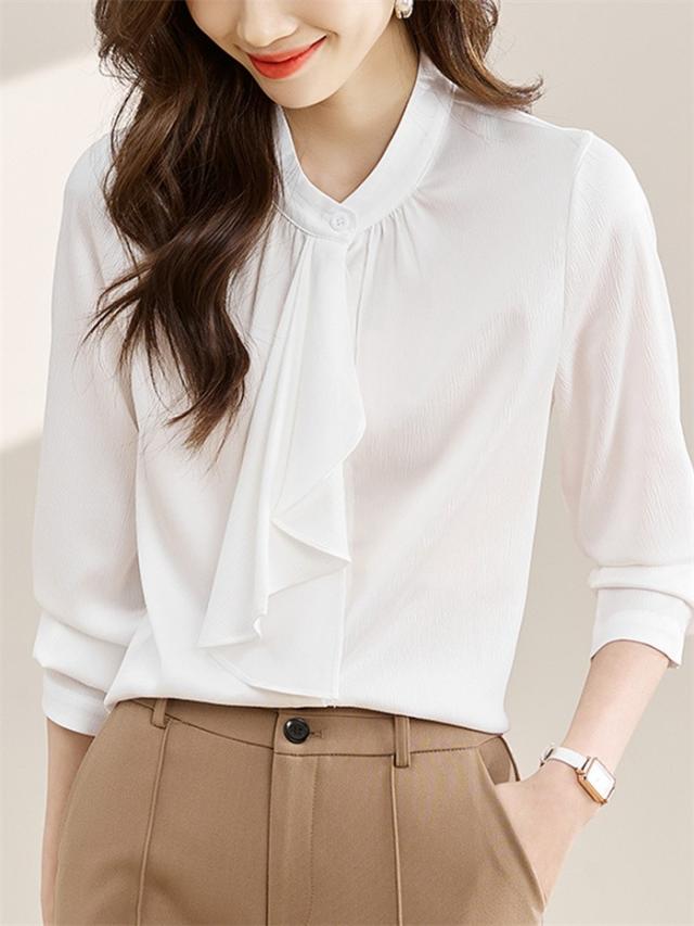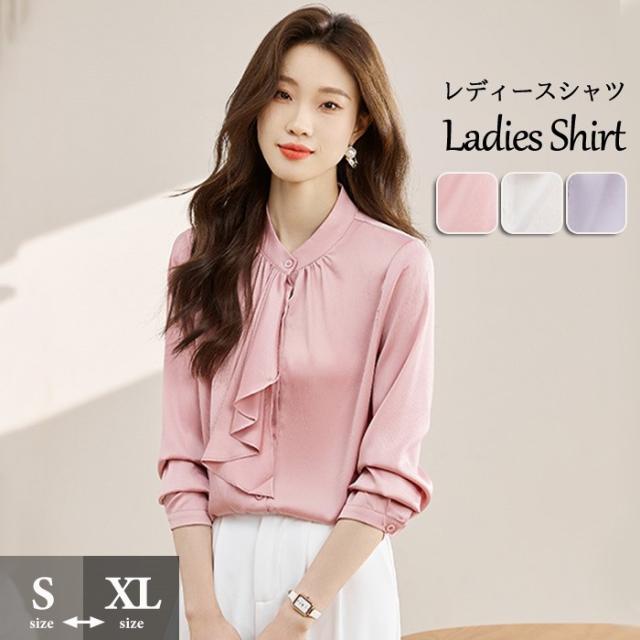 ボウタイ ブラウス レディース ビッグ リボン リボンタイ ボタン 卒業式 女の子 入学式 長袖 春 秋 おしゃれ 上品 きれいめ シャツ ゆったり 薄手 無地 シンプル フェミニン ガーリー 通勤 通学 スーツインナー デート 女子会