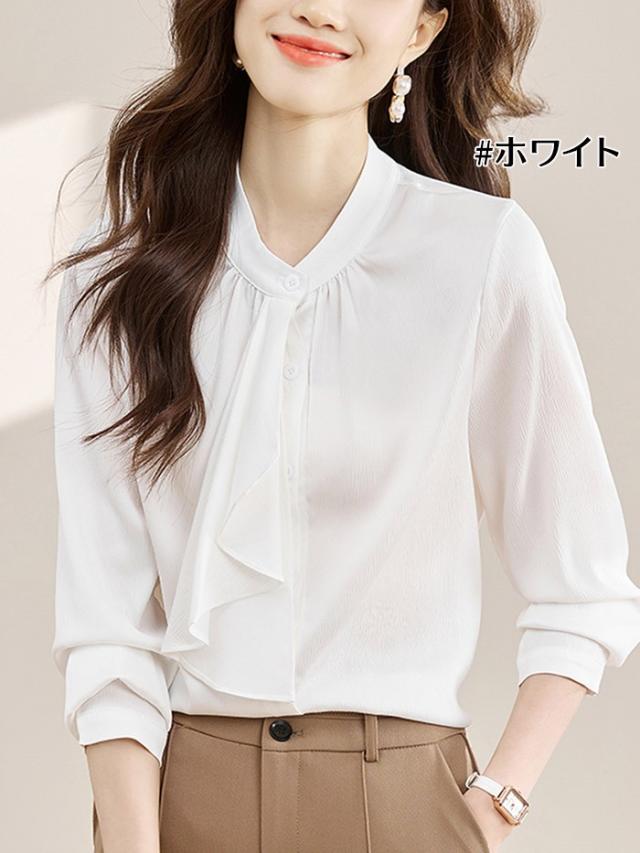 ボウタイ ブラウス レディース ビッグ リボン リボンタイ ボタン 卒業式 女の子 入学式 長袖 春 秋 おしゃれ 上品 きれいめ シャツ ゆったり 薄手 無地 シンプル フェミニン ガーリー 通勤 通学 スーツインナー デート 女子会 dk191x1x1x7 dk191x1