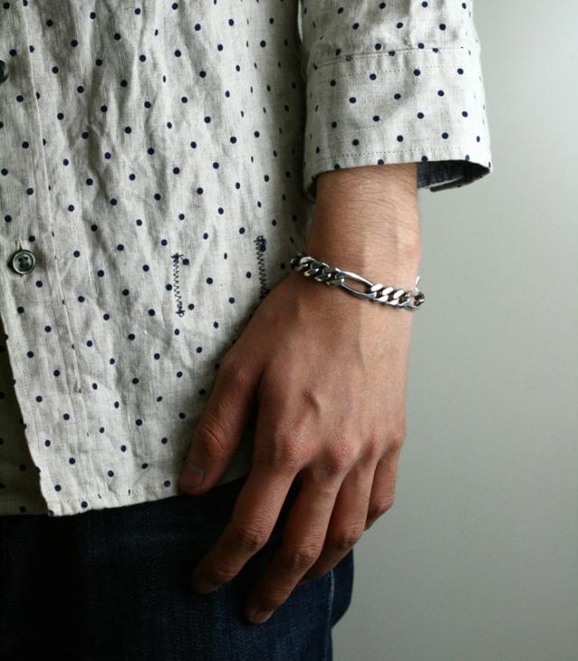大小のシンプルなキヘイチェーンを組み合わせた通称『フィガロチェーン』のブレスレット。