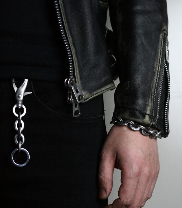 接続金具はチェーンとの一体感のあるC型カラビナでシンプルながら存在感があり、男らしさ満点のアイテムです。