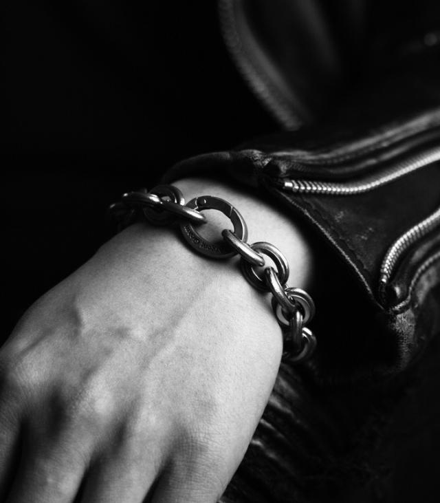 ヴィンテージ風のテクスチャーが雰囲気のあるチェーンブレスレット。