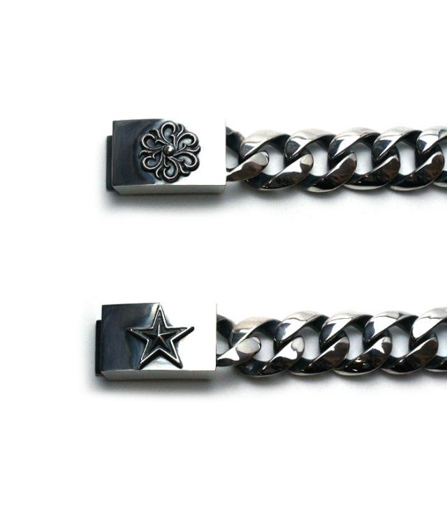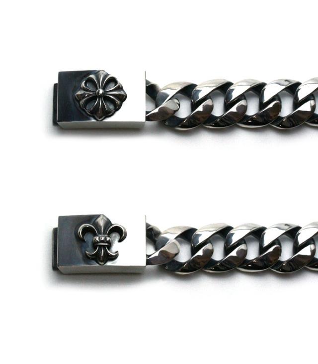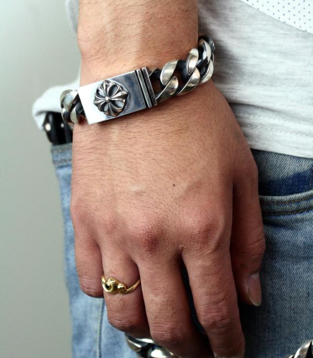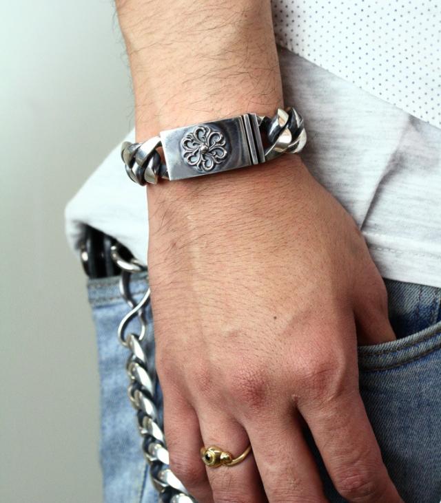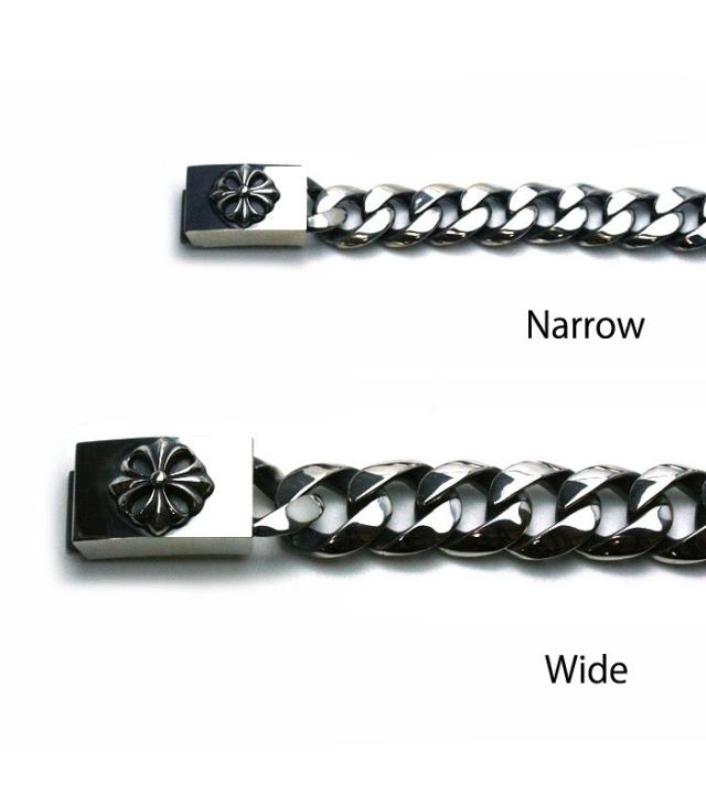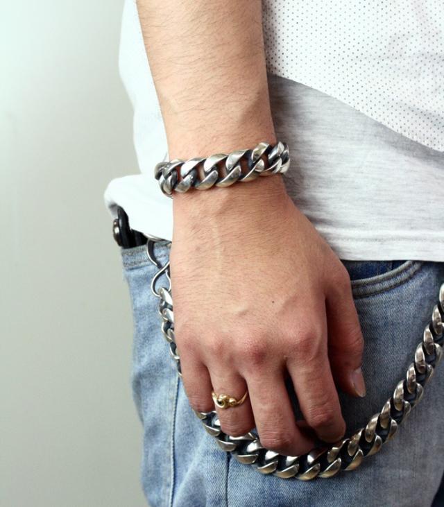 従来型より太めなワイドサイズのチェーンブレスレットは、重量感たっぷりで存在感のあるアイテムです。