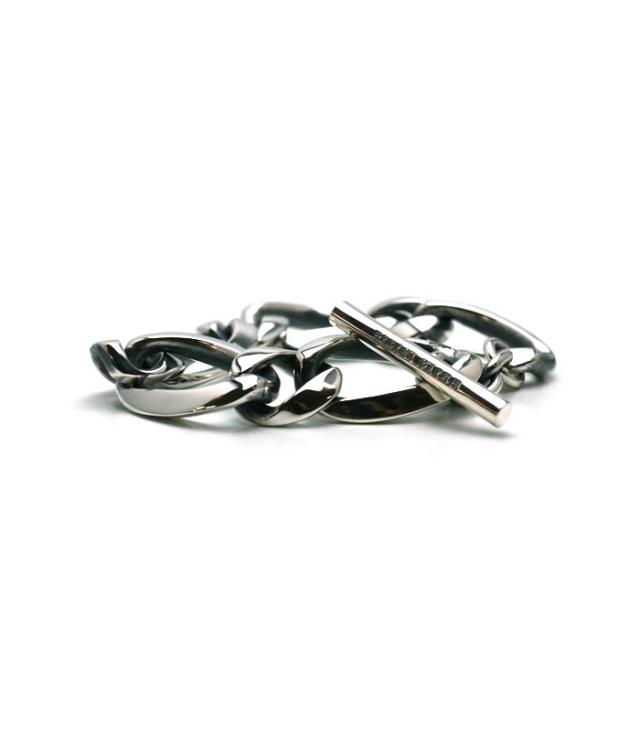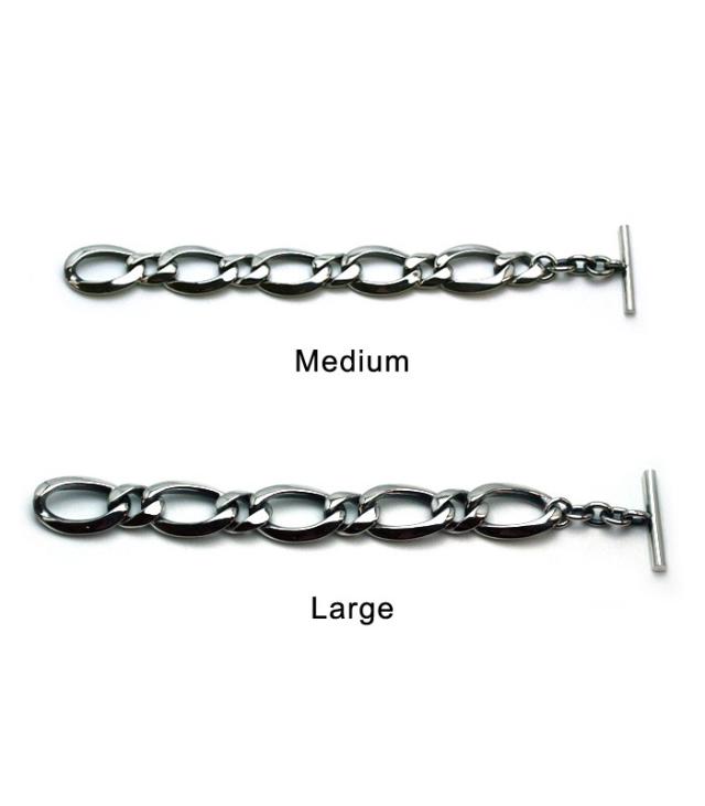 程よい重厚感とシンプルなチェーンの「ミディアム」と重量感たっぷりで存在感があり充分なインパクトのある「ラージ」の2種類があり、サイズは、 M/Lの2サイズ。