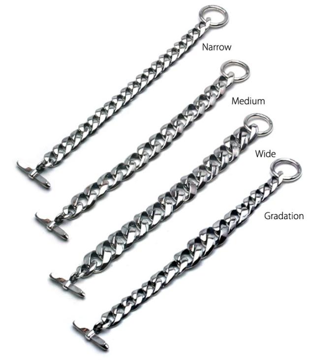 チェーン幅は 、( 12.5mm / Narrow )、( 14.5mm / Medium )、( 18.5mm / Wide )、( 最大18.5mm / Gradation )の4種類。