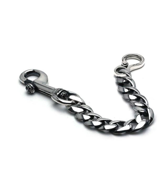 通常のよりも短いチェーンは、パンツのサイドループに取り付けるタイプで主張しすぎないスタイルがさりげなく品のある着用が楽しめます。