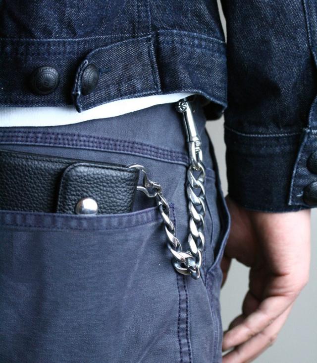 重厚感のあるクリップにベーシックなミディアムチェーンの組み合わせは、どんなスタイルにも合わせやすく飽きのこないウォレットチェーンです。