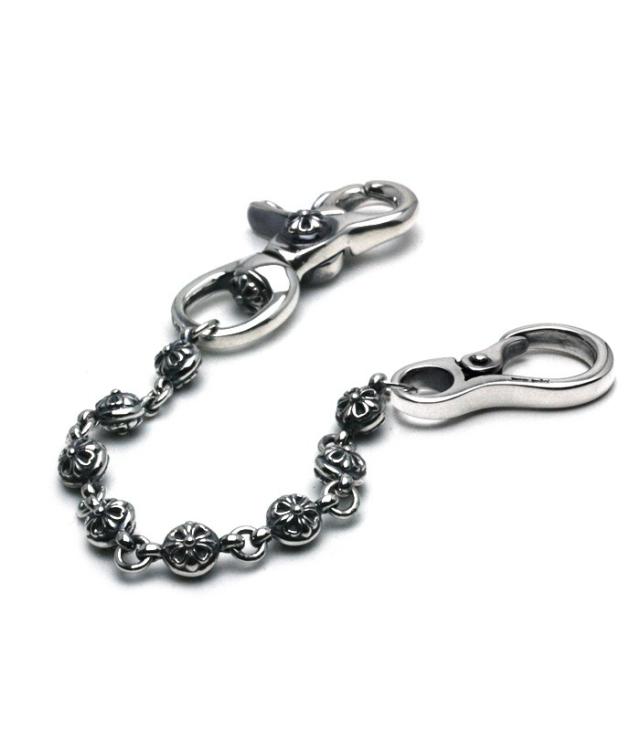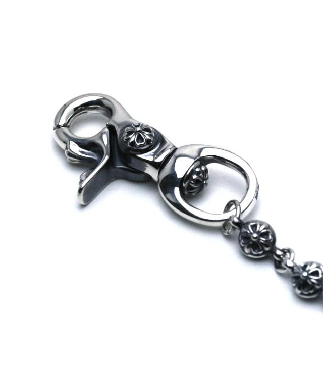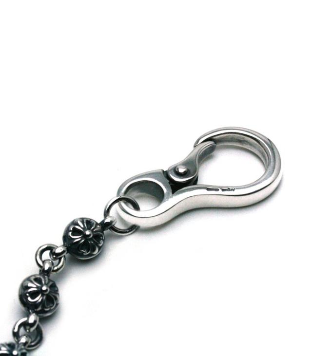 ミディアムクリップにひとつひとつのコマに両面モチーフが彫り込まれた細身のボールチェーンは、どんなスタイルにも合わせやすく飽きのこないウォレットチェーンです。