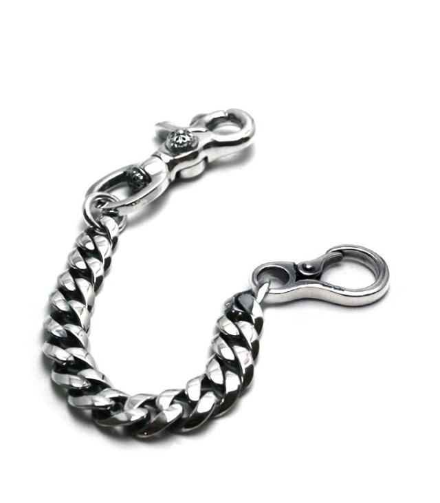ミディアムクリップにナローチェーンをセットしたベリーショートウォレットチェーン。