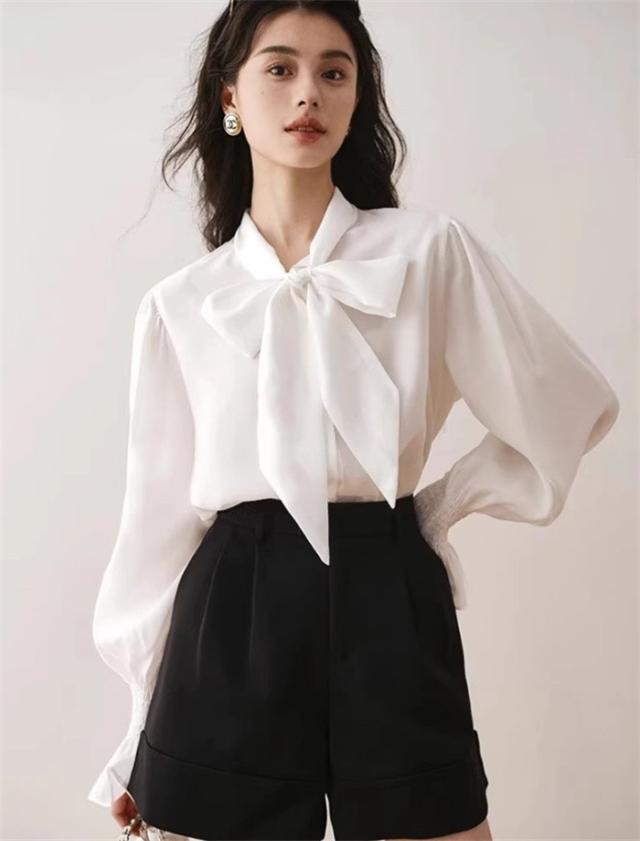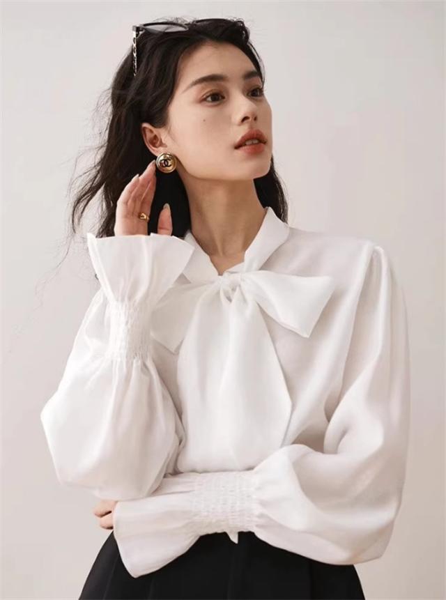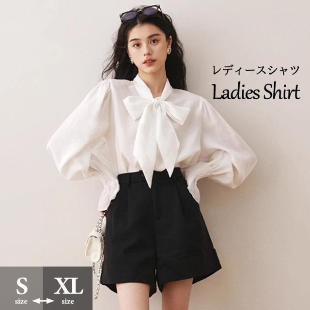 ボウタイ ブラウス レディース ビッグ リボン リボンタイ ボタン 卒業式 女の子 入学式 長袖 春 秋 おしゃれ 上品 きれいめ シャツ ゆったり 薄手 無地 シンプル フェミニン ガーリー 通勤 通学 スーツインナー デート 女子会