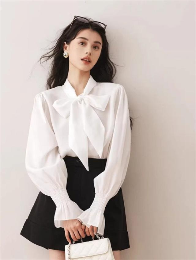 ボウタイ ブラウス レディース ビッグ リボン リボンタイ ボタン 卒業式 女の子 入学式 長袖 春 秋 おしゃれ 上品 きれいめ シャツ ゆったり 薄手 無地 シンプル フェミニン ガーリー 通勤 通学 スーツインナー デート 女子会 dk188x1x1x7 dk188x1