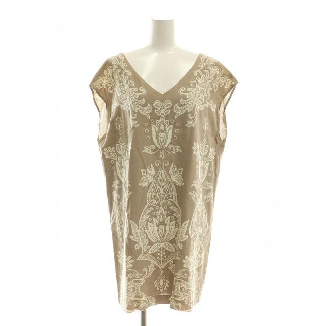 【中古】ダイアグラム グレースコンチネンタル 総柄 Vネックワンピース ひざ丈 ノーリーズ 36 ベージュ