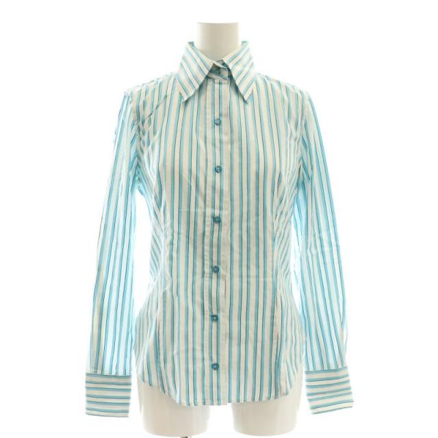 【中古】エトロ ETRO ストライプシャツ スタンドカラー 白 ホワイト 水色 /AT ■OS レディース