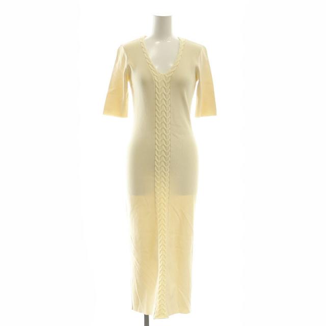【中古】ジェンヌ JENNE 23SS フロントケーブルニット タイトワンピース ミモレ ロング 五分袖 S アイボリー