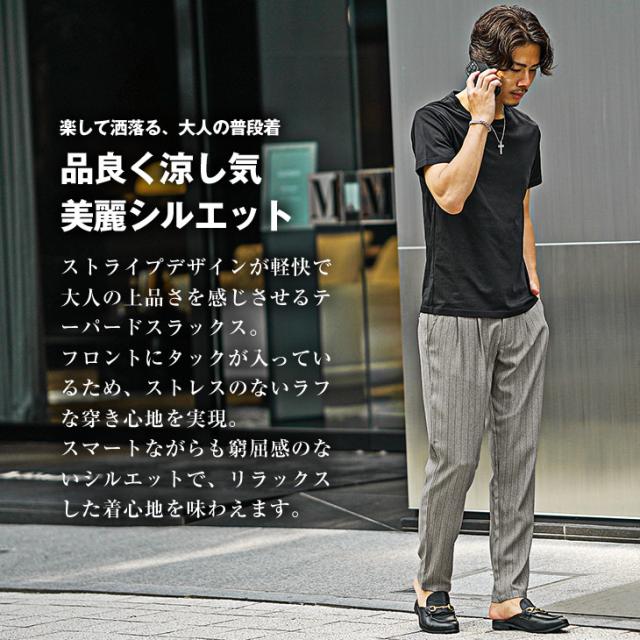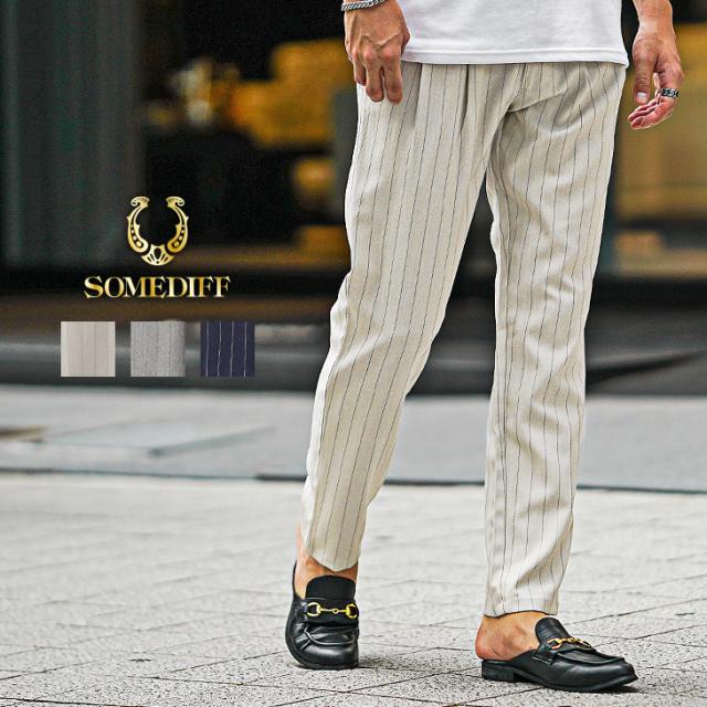 スラックス メンズ テーパードパンツ テーパード ボトムス パンツ 10分丈 タイト 細身 スリム スラックス ストライプ柄 フォーマル ビジネス カジュアル ネイビー ベージュ グレー 大きいサイズ XL 秋 秋服 秋物 SOMEDIFF