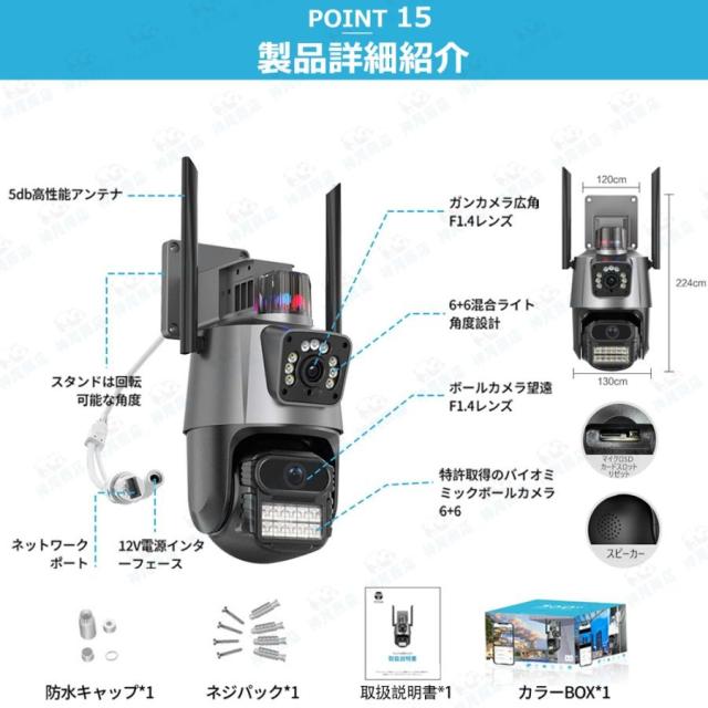 防犯カメラ 屋外 家庭用 wifi 800万画素 屋外カメラ 人体検知 自動追跡 パンチルト デュアル IP66 工事不要 遠隔監視 防水防塵 監視カメラ 暗視 高画質 事務所