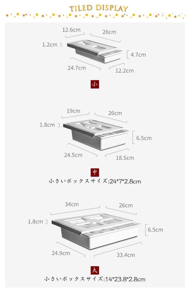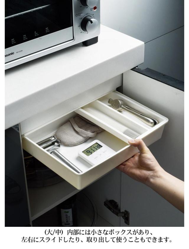 | 万能の収納ケースで、卓下式収納ボックスは、オフィス、 部屋、キッチンなどに適用可能です。 お持ちのデスクや棚等に引き出しをプラス。 (大/中)内部には小さなボックスがあり、左右にスライドしたり、取り出して使うこともできます。 A4書類や筆記用具などが片付く。 強力なテープ付きなので、簡単に貼るだけ固定できます。穴あけ不要で貼り付けだけ。 | |