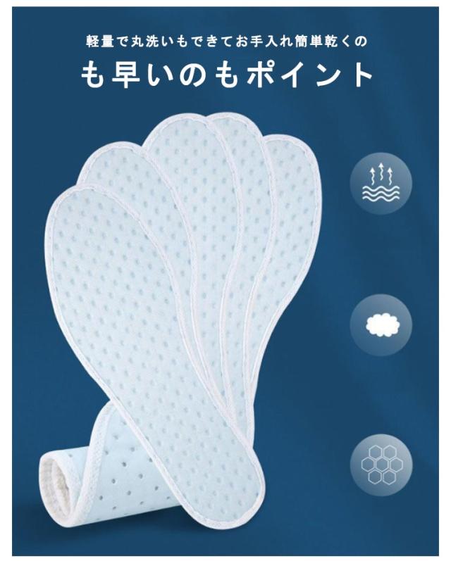 | 高い反発性と 高いグリップ性能 を備えたインソール とても柔らかで柔軟性がある素材が足にかかる衝撃を吸収しますので、サッカーやジョギング等のスポーツはもちろん、通勤やお散歩にもおすすめで 無数の穴が通気性をよくしムレず、防臭・抗菌効果でいつも快適です。 軽量で丸洗いもできてお手入れ簡単乾くのも早いのもポイント | |