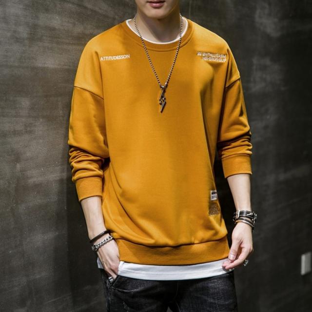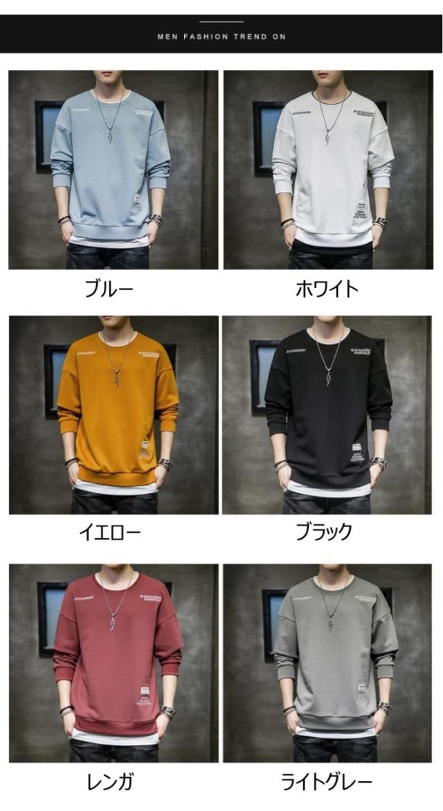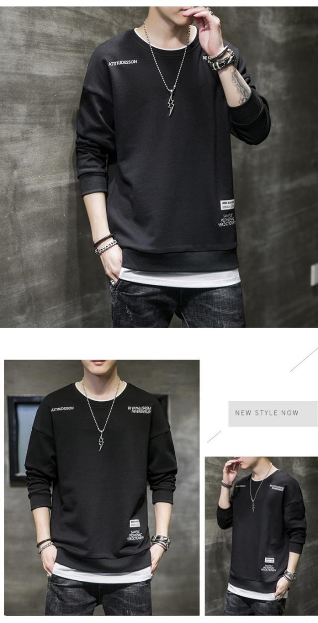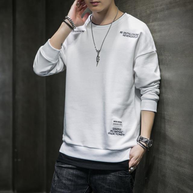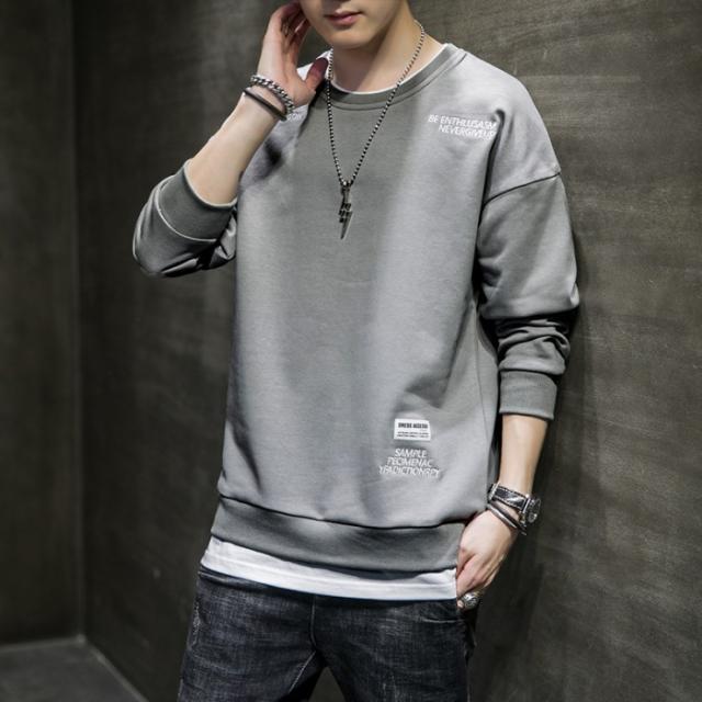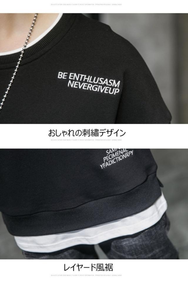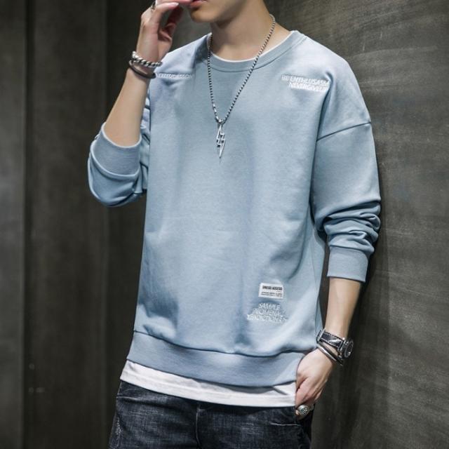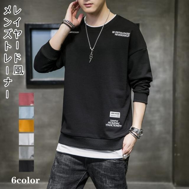 レイヤード風トレーナー メンズ トップス 長袖 ジャージ 春服 ラウンドネック 刺? 重ね着 カジュアル 学生 春秋 ゆったり