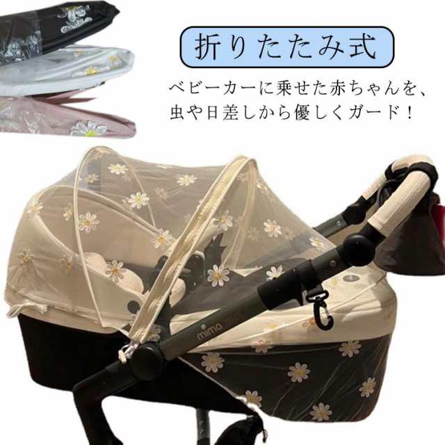 ベビーカー蚊帳 ベビーカー蚊帳 デイジー柄 蚊よけ ベビーカーカバー メッシュ ガード ファスナー 蚊帳 刺繍 簡単 取り付け簡単 着脱 刺しゅう 虫除け ホコリよけ ワイヤー入り コンパクト