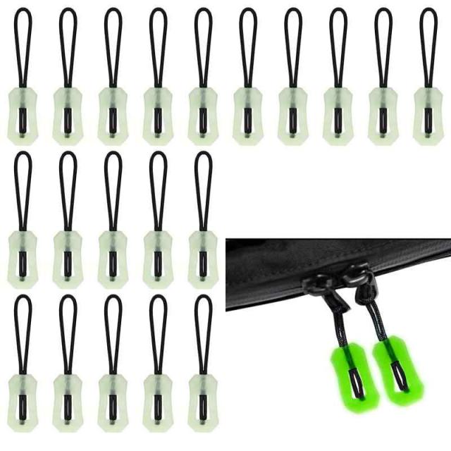 nalaina ジッパープル 蓄光ジッパータブ 20個セット ジッパータブ 夜に輝きます ファスナー 交換 引き手 修理 延長 部品 暗闇で光る 夜用 夜に輝き 取り付け簡単 荷物/バックパック/テント/衣類/寝袋用