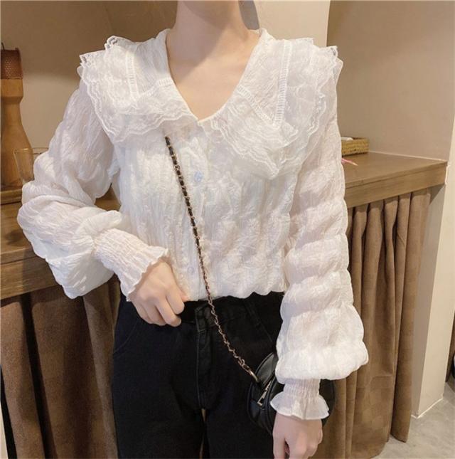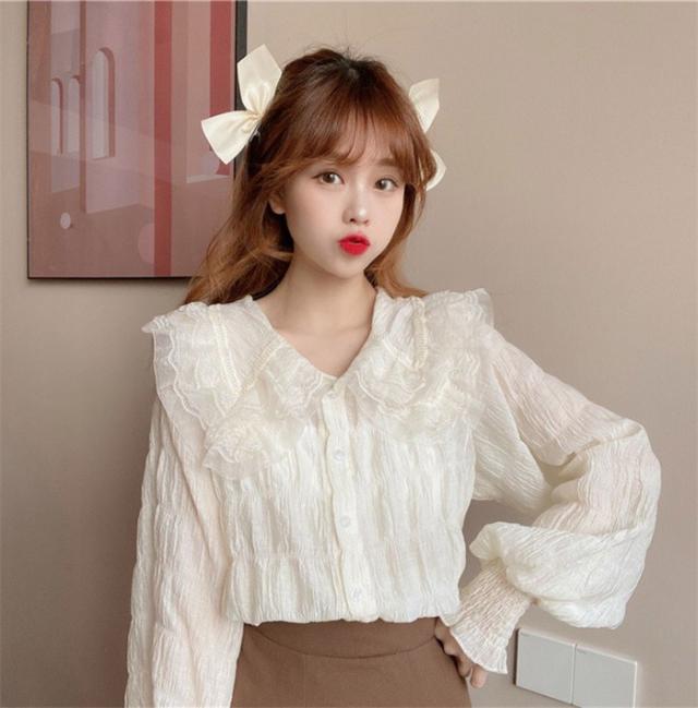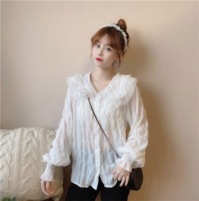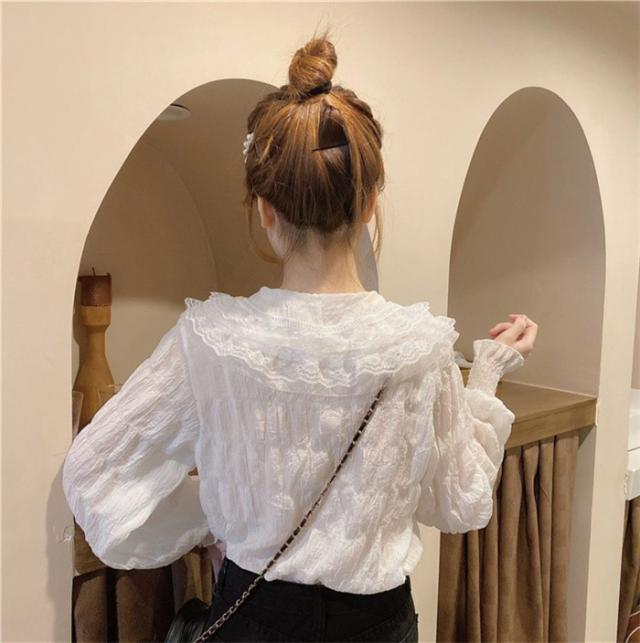 ブラウス レディース フリル ビッグ襟 ポワント袖 レース 透け感 ボタン 卒業式 ゆめかわ かわいい 女の子 入学式 長袖 春 秋 おしゃれ 上品 きれいめ シャツ ゆったり 薄手 無地 フェミニン ガーリー 通勤 通学 スーツインナー デート 女子会 dk178x1cyh5 dk178x1