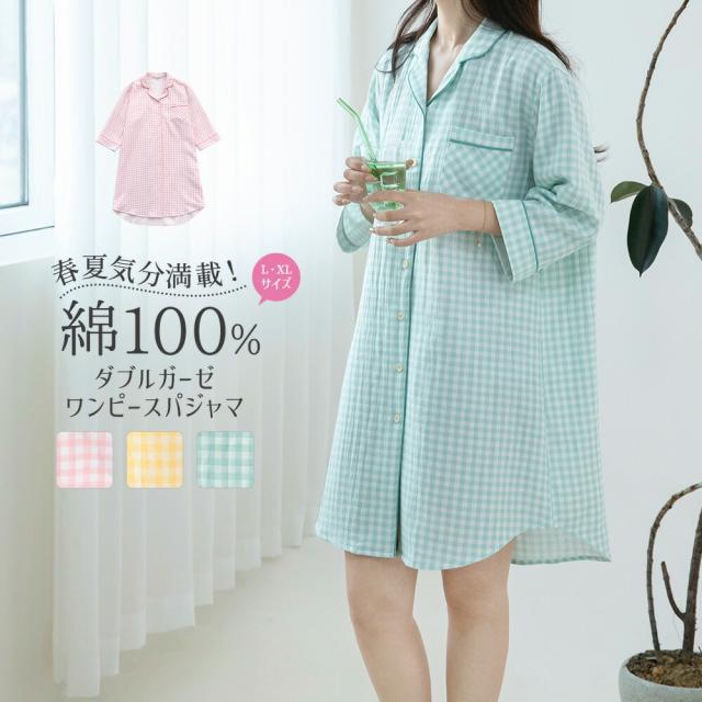ルームウェア ワンピース レディース 7分袖 綿100 ダブルガーゼパジャマ 春 夏 ガーゼ 膝丈ワンピース 部屋着 膝丈 ルームワンピ 前開き