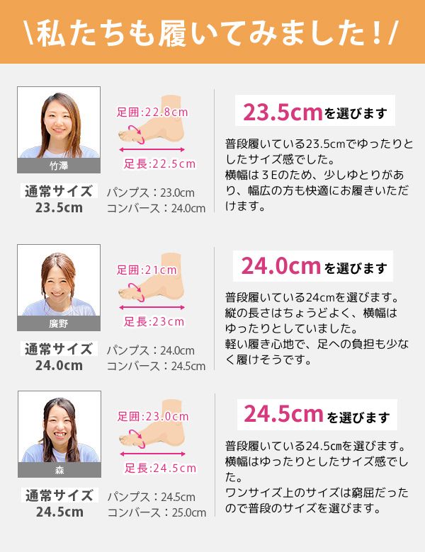 取り扱いサイズ:22.5cm 23cm 23.5cm 24cm 24.5cm