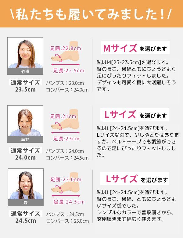 取り扱いサイズ:M[23-23.5cm] L[24-24.5cm] LL[25-25.5cm]