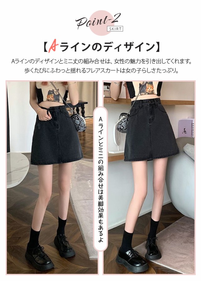 【ポイント5倍!】デニム スカート ショート丈 Aライン ミニスカ ゆったり 可愛い ミニ ジーンズスカート カジュアル 台形 短いスカート