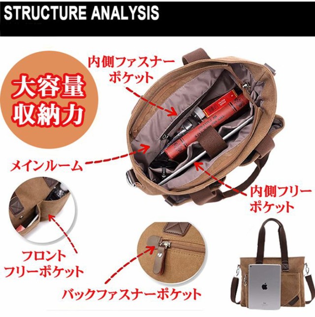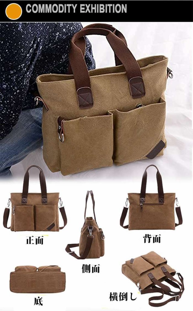トートバッグ メンズ 帆布 キャンバス 大きめ おしゃれ 大容量 ビジネス シンプル 無地 肩掛け ショルダーバッグ 通勤 旅行