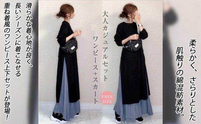 【ポイント5倍!】ワンピース レディース 秋 冬 春 ロングワンピース スカート セットアップ マキシ丈 通勤 可愛い ゆったり 体型カバー 20代 30代 40代 50代