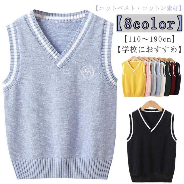 スクール ニット ベスト Vネック キッズ ジュニア 子供 男女兼用 女の子 男の子 制服 小学生 通学 子供用ベスト フォーマル 冠婚葬祭 110 120 130 140 150 160 170 175 180 190cm 幼稚園 小学校 おしゃれ かわいい 春 秋 冬 発表会 入学 学生服