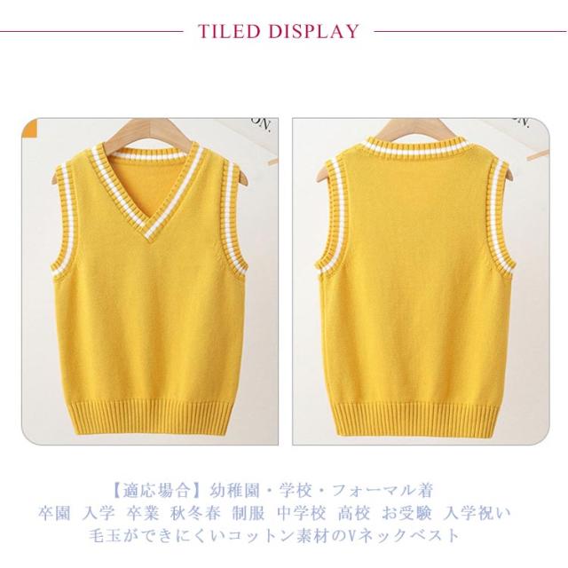 | 【ニットベスト・コットン素材】 【110?190cm】【8color】 【学校におすすめ】 【適応場合】幼稚園・学校・フォーマル着 卒園 入学 卒業 秋冬春 制服 中学校 高校 お受験 入学祝い 毛玉ができにくいコットン素材のVネックベスト 定番のカラーで使いやすく 男女兼用でお使いいただけます 幼稚園や学校のスクール用・冠婚葬祭用・カジュアルにも様々なシーンでご利用できる優れものです。 190cmまで展開しているので高校生でもok | |