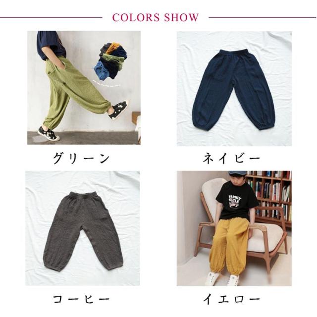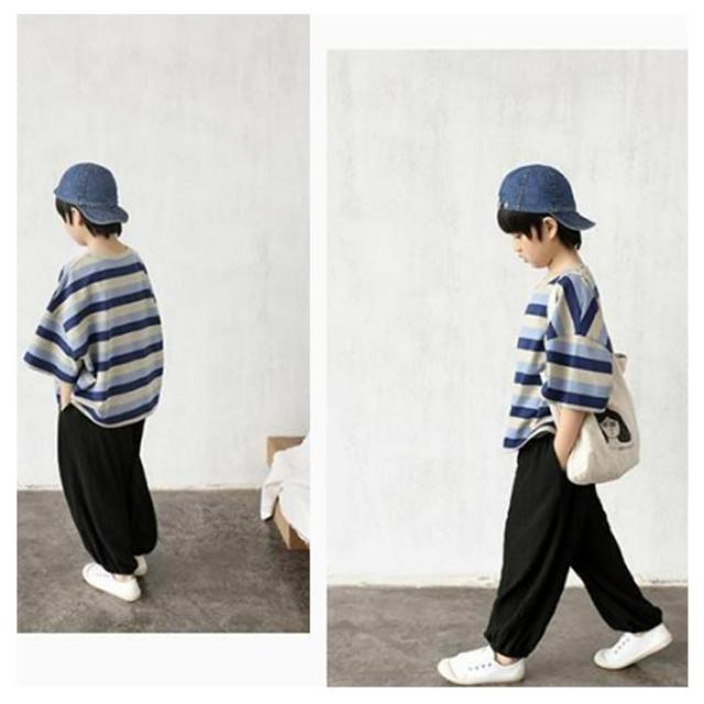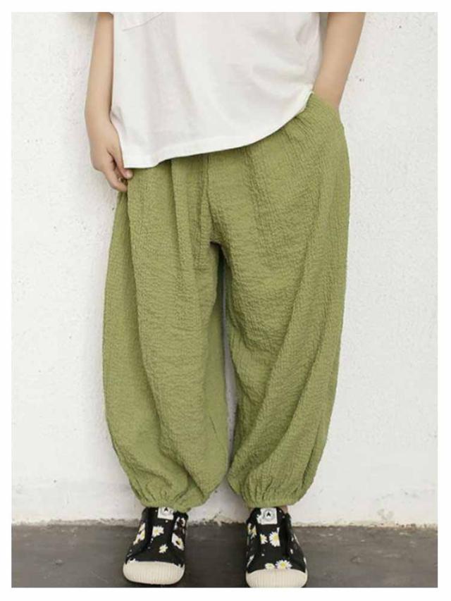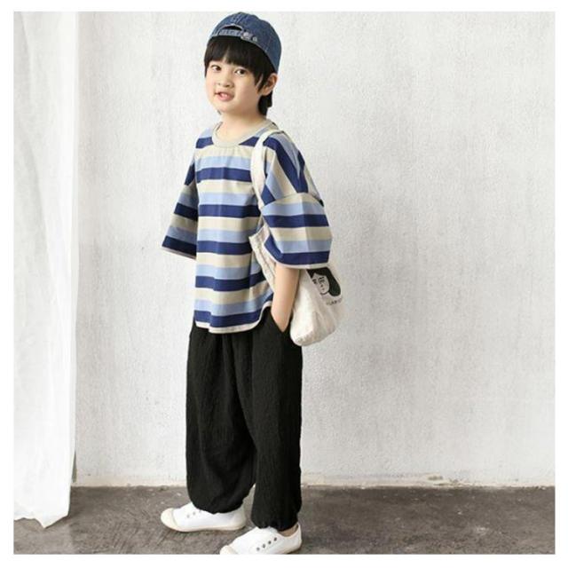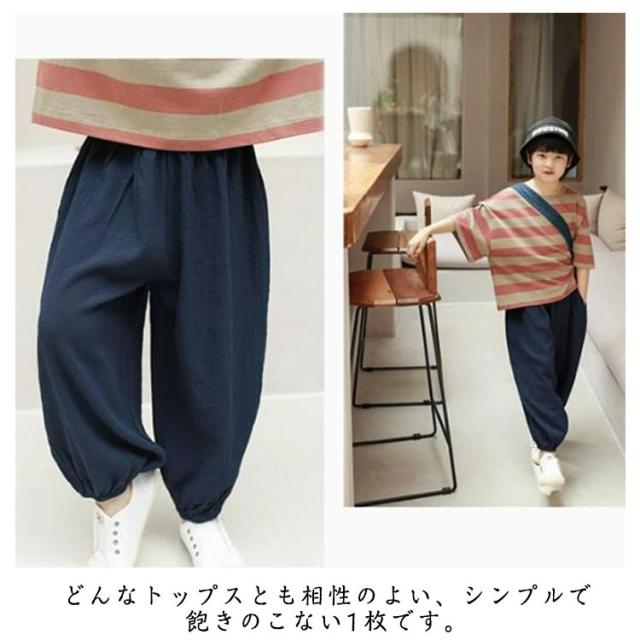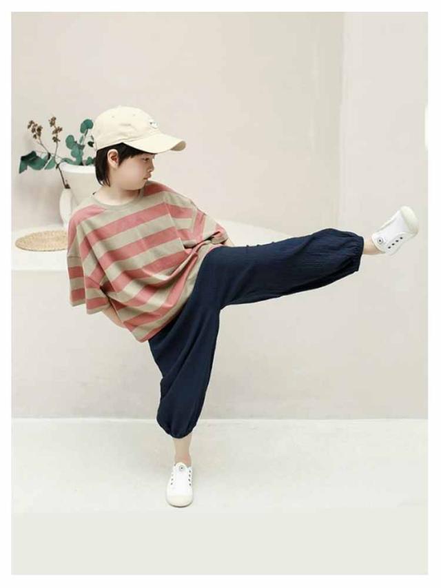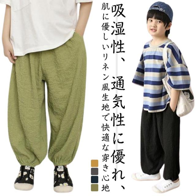 ロングパンツ カジュアルパンツ パンツ サルエルパンツ ジュニア キッズ 薄手 サマーパンツ ワイドパンツ 長ズボン 男の子 リラックス イージーパンツ ボトムス ストライプ ひんやり 涼しい 無地 快適 軽量 部屋着